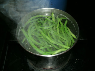 2. Blanch for 3 minutes. All this means is that you get a pot boiling and dump in the beans for 3 minutes.