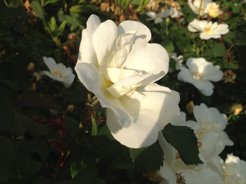 Our white roses are also blooming. There are literally hundreds on the two bushes, and they just keep coming.